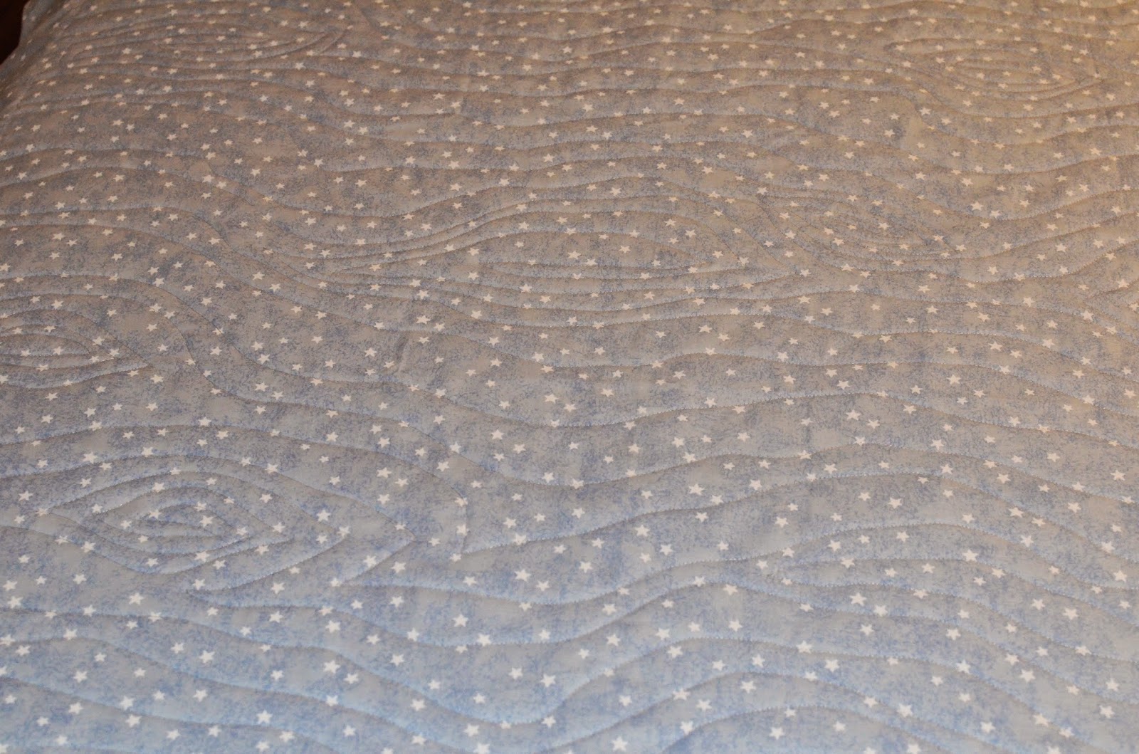 I did some custom quilting on this 36" x 36" wall hanging and it turned out fabulous! It has a double border of feathers, pebbling and swirls, echoing the stars, and ruler work inside the stars. Now to find a place around the house to hang it...